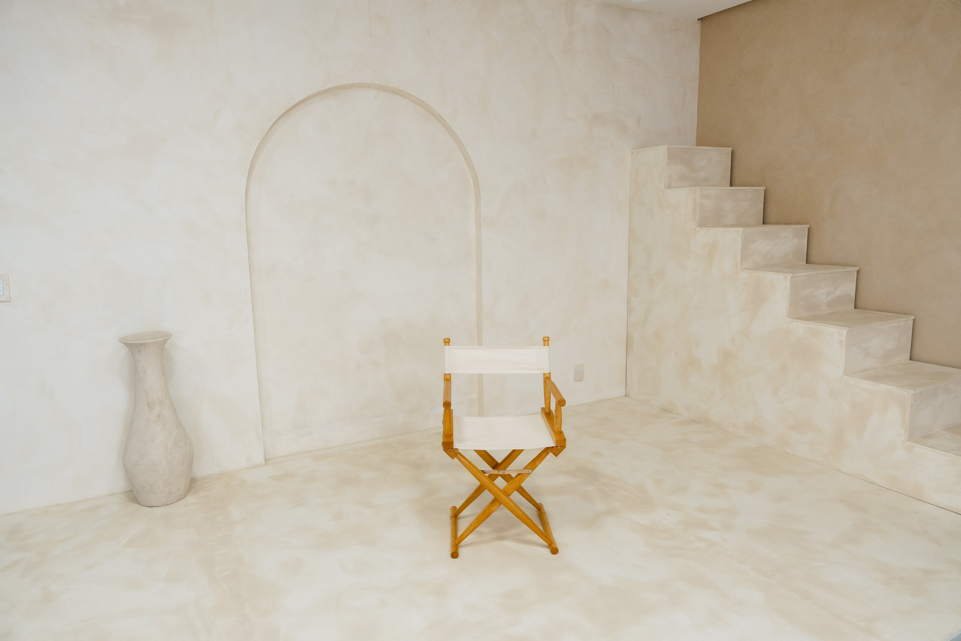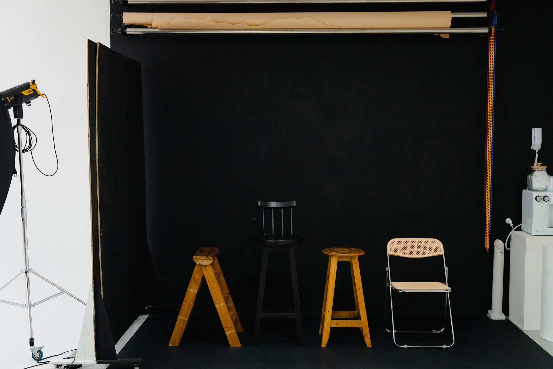 O fundo infinito é sempre pintado de branco antes das locações, fique à vontade para movimentar e fazer o que for preciso no